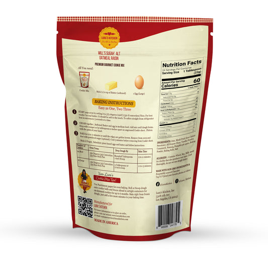 Will's Sugah' Alt Spiced Oatmeal Raisin - Avoine et raisins secs sans sucre de Will, préparés avec du fruit de moine