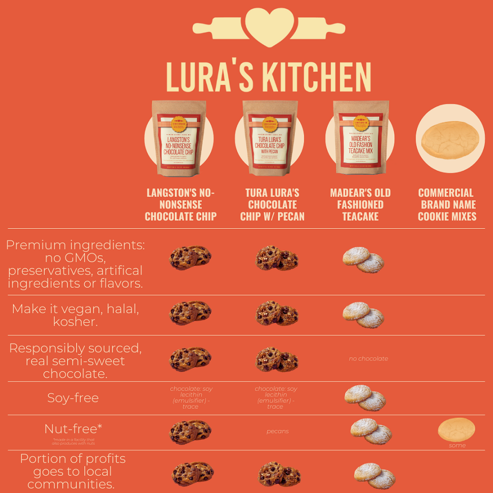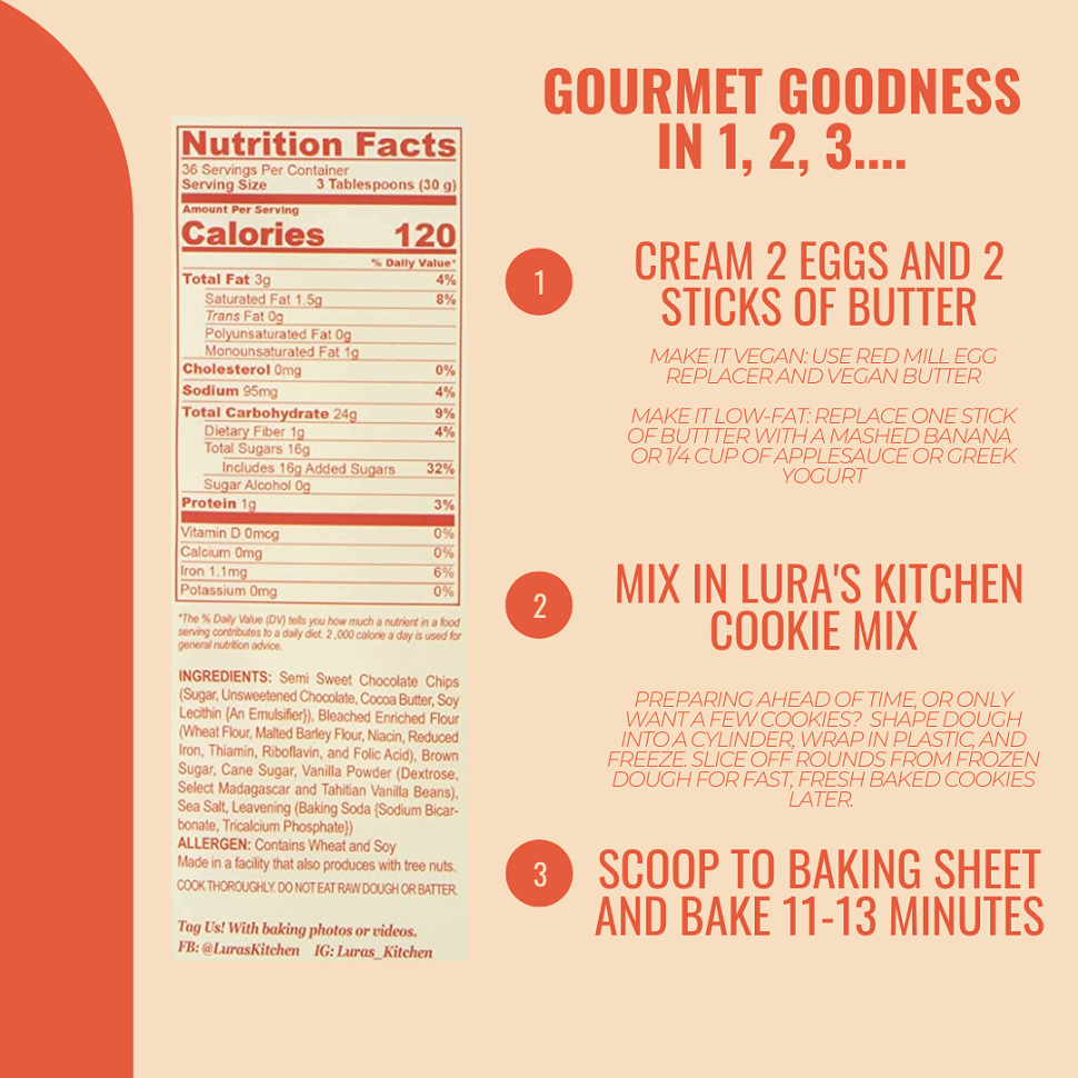 Simply rich cookie mix how Langston wants Mom to make it. Langston's No-Nonsense Chocolate Chip Cookie Mix is the perfect choice for those looking for a classic cookie experience. This premium gourmet mix makes it easy to whip up a batch of delicious, chewy cookies in no time - just add eggs and butter! Enjoy the decadent pure vanilla and plentiful semi-sweet chocolate morsels, without any of the unnecessary ingredients like nuts. Make 3 to 4 dozen medium or 2 dozen to large cookies with this mix and satisfy your sweet tooth.